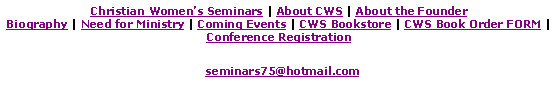 Print out form, mail and make checks payable to: Christian Women's Seminars P.O. Box 201 Burlington, NJ 08016